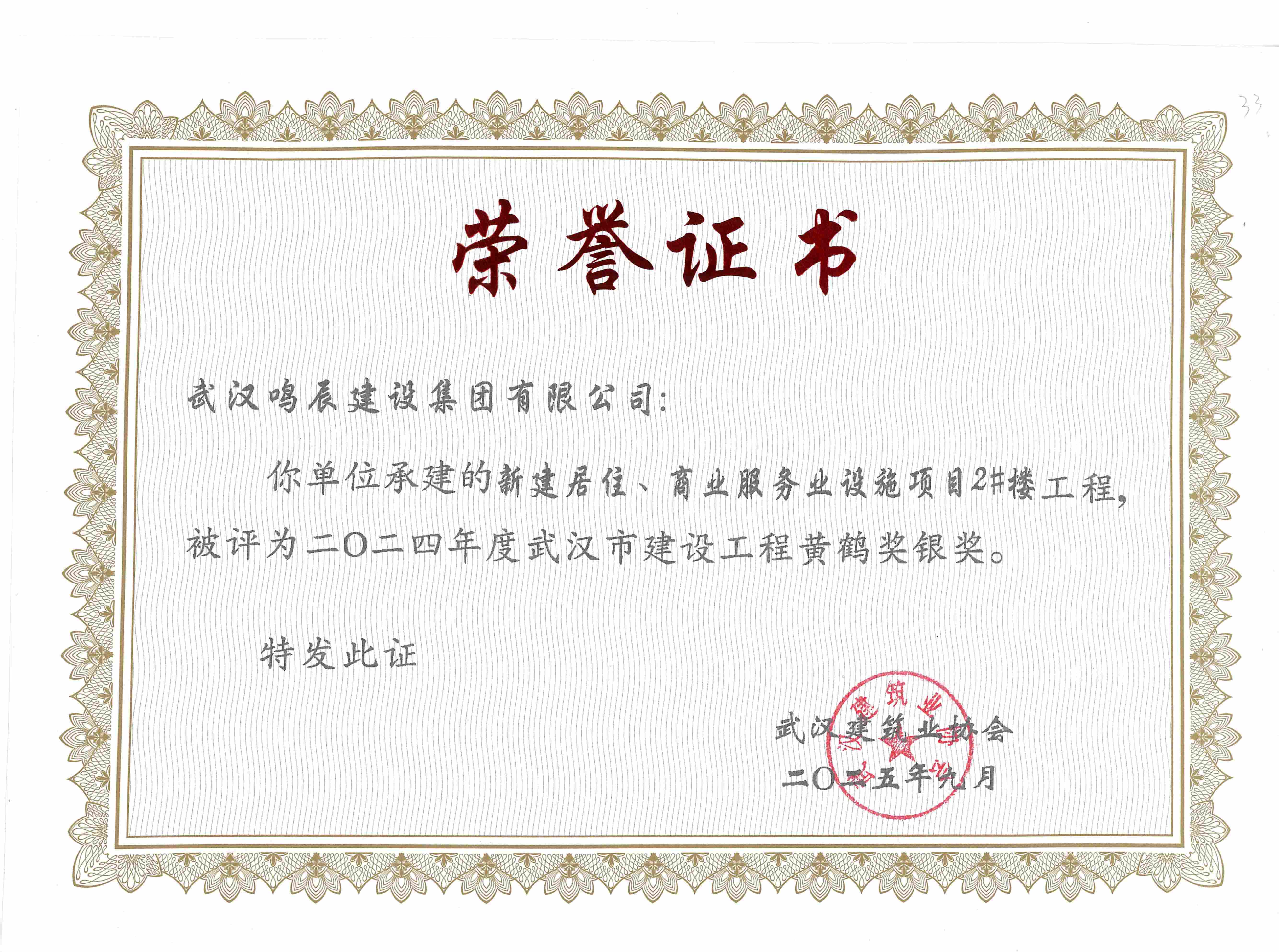 2024年度武漢市建設(shè)工程黃鶴獎銀獎
